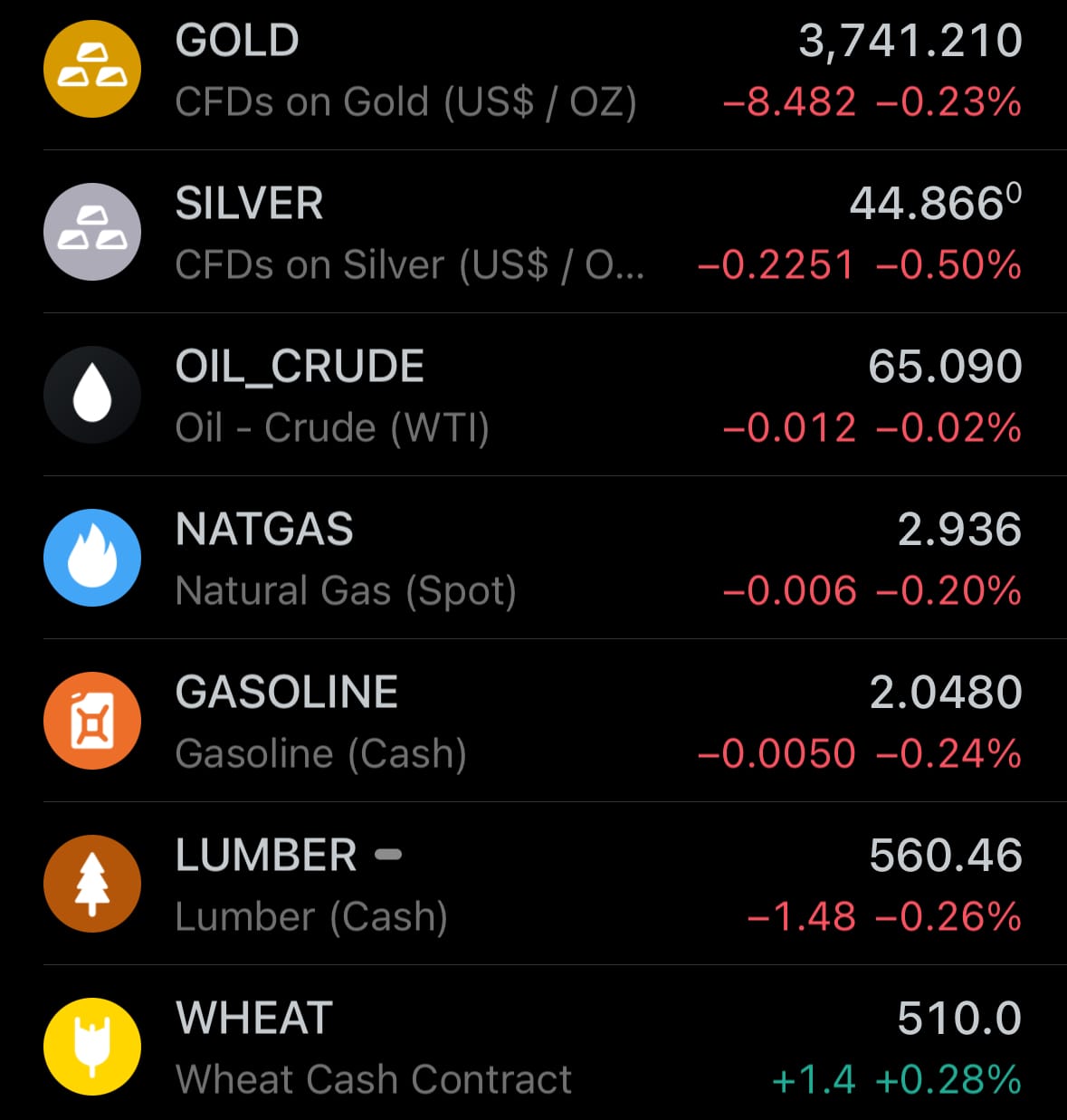 - Yesterday’s commodity market: