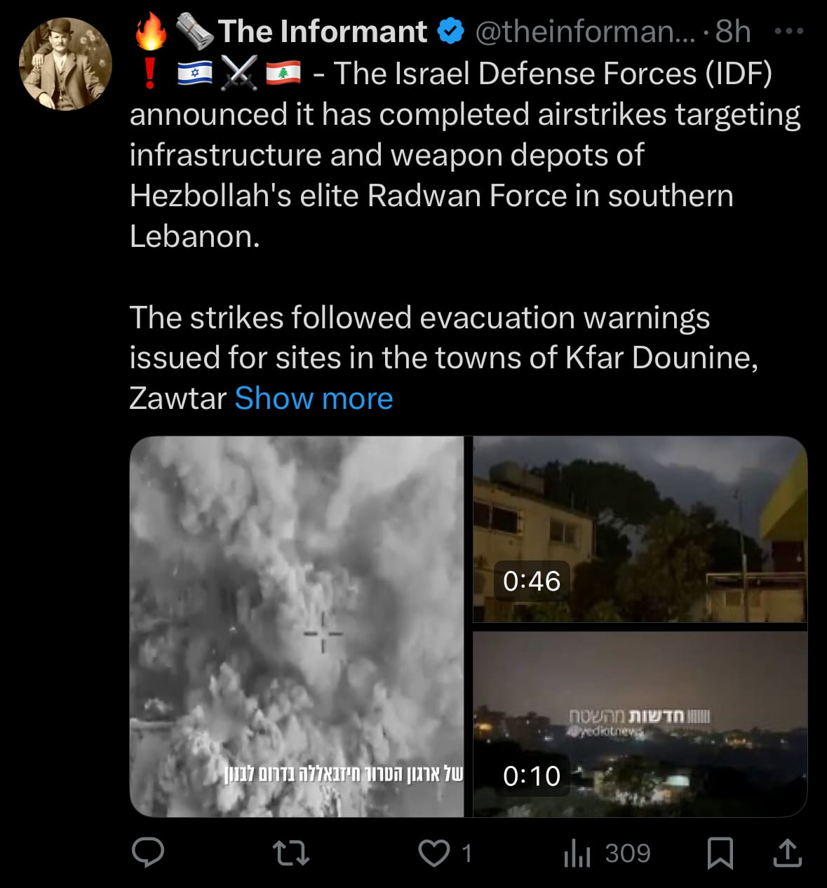 - On November 6, 2025, the Israel Defense Forces (IDF) carried out a series of airstrikes in southern Lebanon, targeting Hezbollah positions in villages including Tayr Debba, Khiam, and Ayta ash-Shab, following evacuation warnings issued to residents. The strikes, described by the IDF as preemptive measures to prevent Hezbollah from rearming and rebuilding infrastructure near the border, resulted in visible smoke and destruction but no immediate reports of casualties.