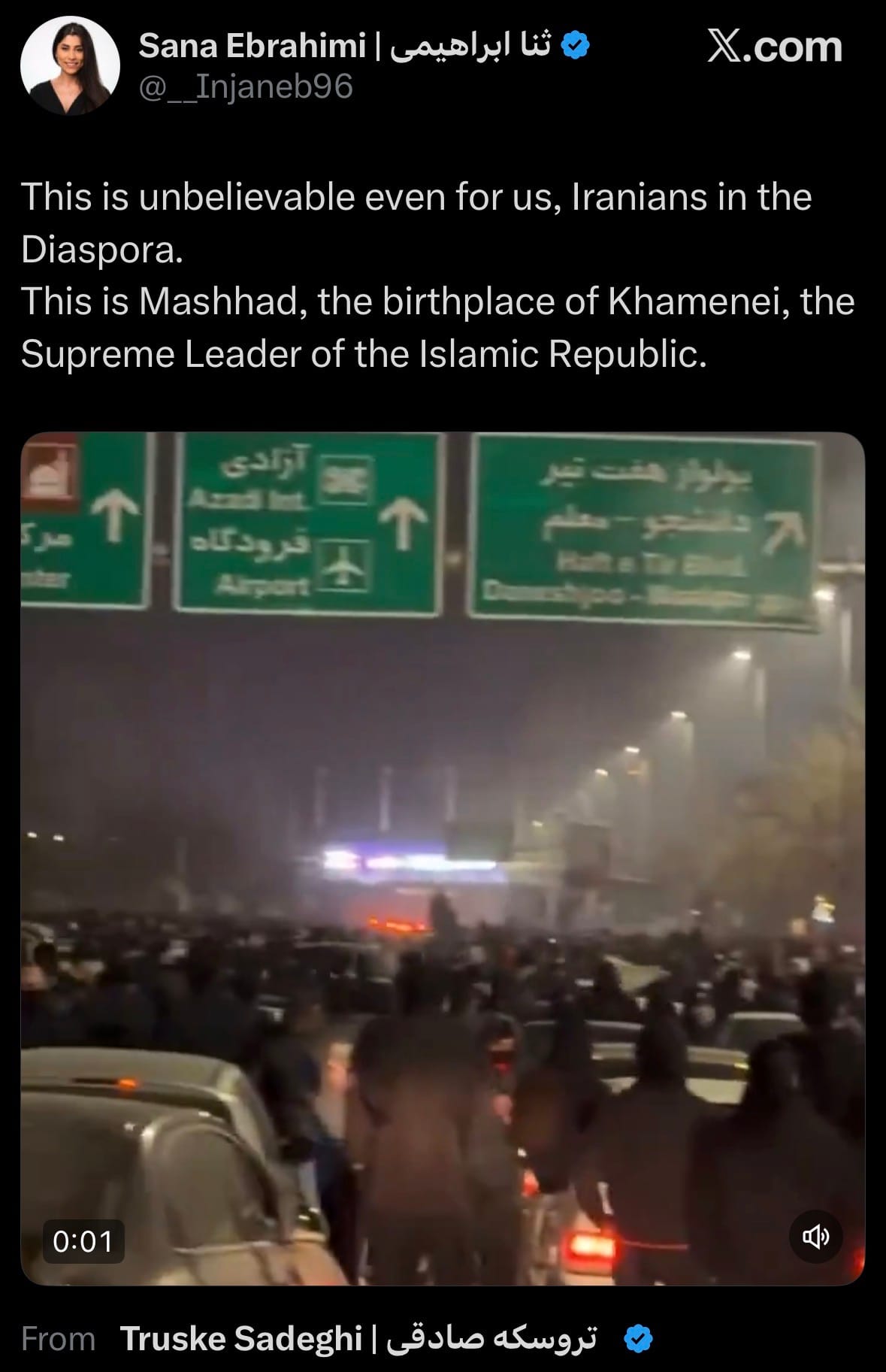 - The unrest, initially triggered by economic strikes over currency devaluation and inflation exceeding 40%, has expanded to include calls for regime reform or replacement, with some groups voicing support for exiled figures like Reza Pahlavi. Government responses include intensified security deployments, internet restrictions in affected regions, and statements from Supreme Leader Ali Khamenei labeling violent acts as foreign-instigated while acknowledging economic concerns. President Masoud Pezeshkian reiterated offers for dialogue, but protests persist. Economic impacts include disrupted bazaar operations and supply chains, while social effects involve school closures and heightened tensions in minority communities.