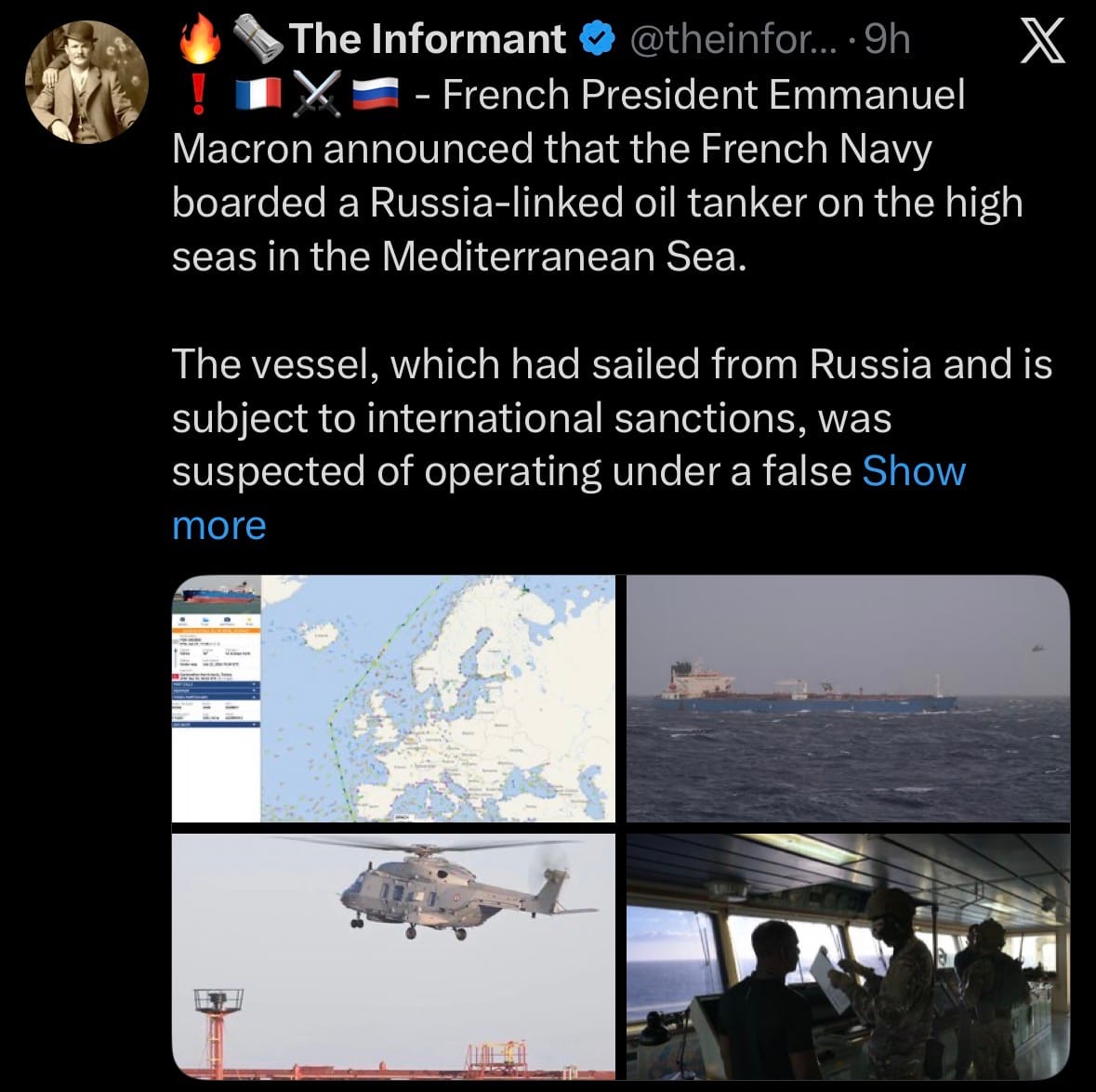 - The boarding operation was supported by intelligence from allied nations, including the United Kingdom, and was carried out in full compliance with the United Nations Convention on the Law of the Sea. A judicial investigation has been opened in France, and the tanker—reportedly named the Grinch—is being escorted to a French port for detailed inspection and verification of its cargo, ownership, and compliance status. Macron stated that enforcing sanctions against the shadow fleet is essential, as its activities generate revenue that supports Russia's war of aggression against Ukraine. No resistance or incidents were reported during the boarding, and the action aligns with broader Western efforts to tighten enforcement on sanctioned Russian energy trade.