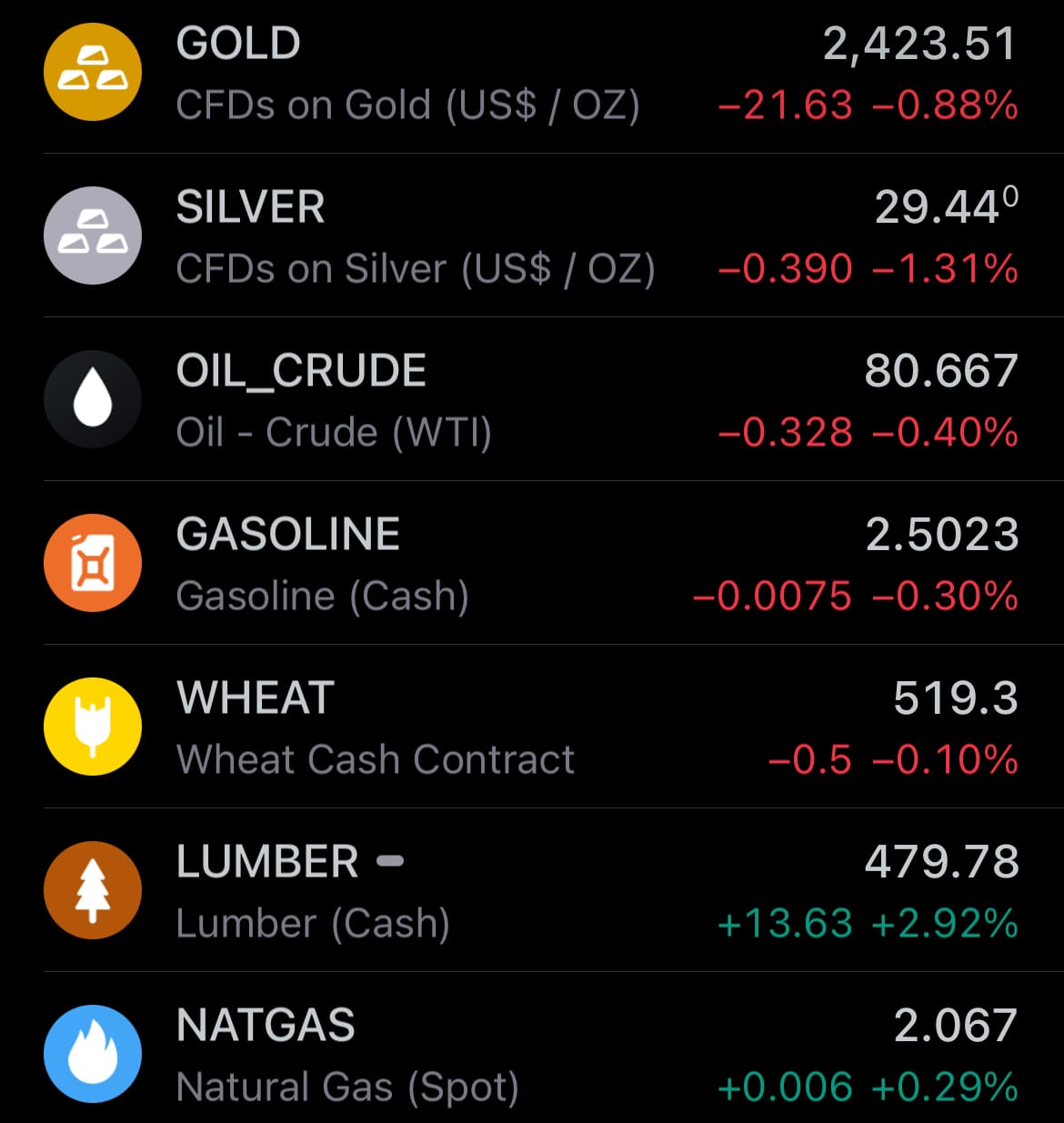 - Yesterday’s commodity market: