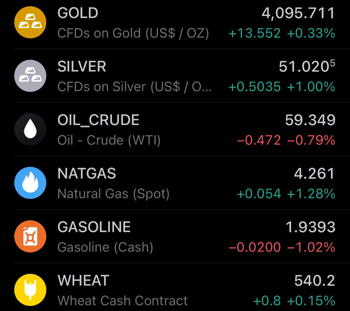 - Yesterday’s commodity market: