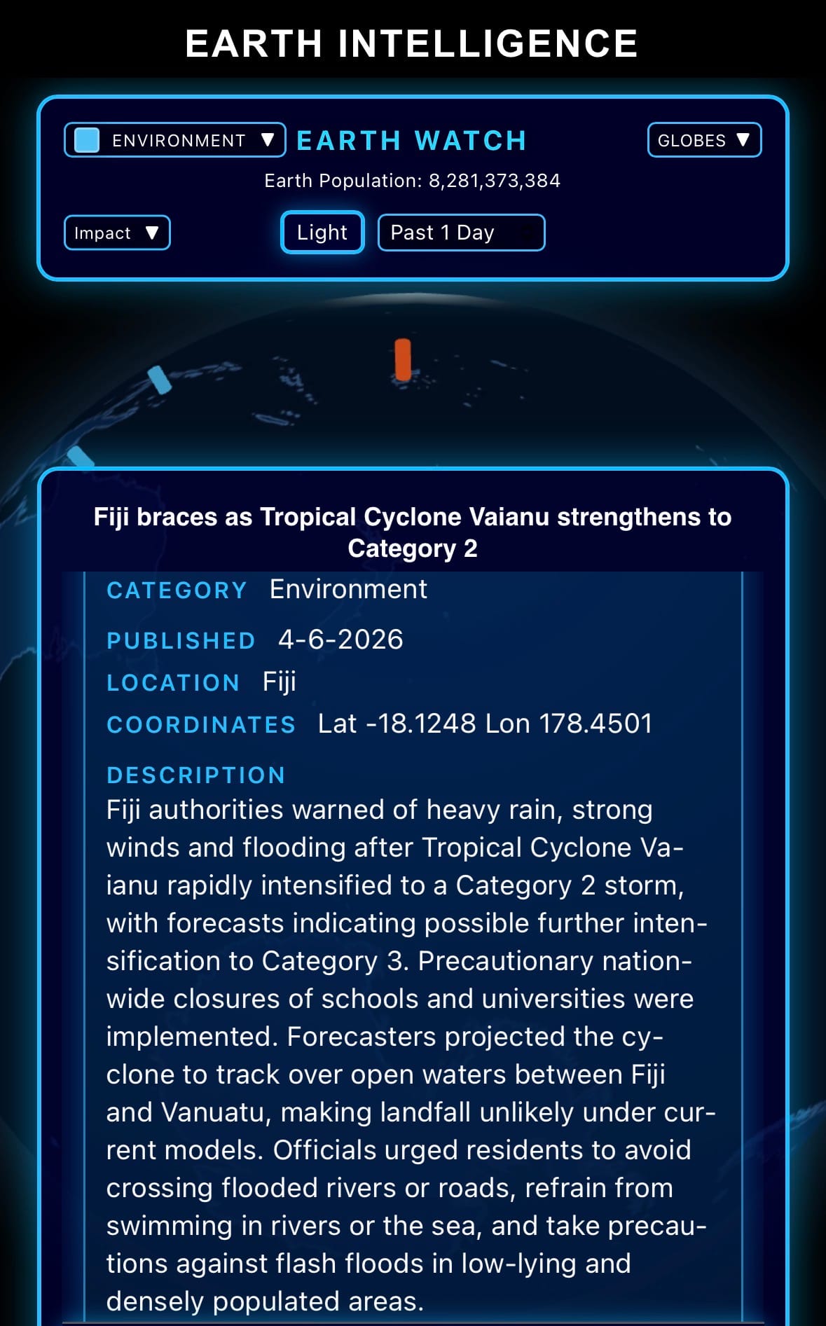 - Click below if you’d like to view our free EARTH WATCH globe:
