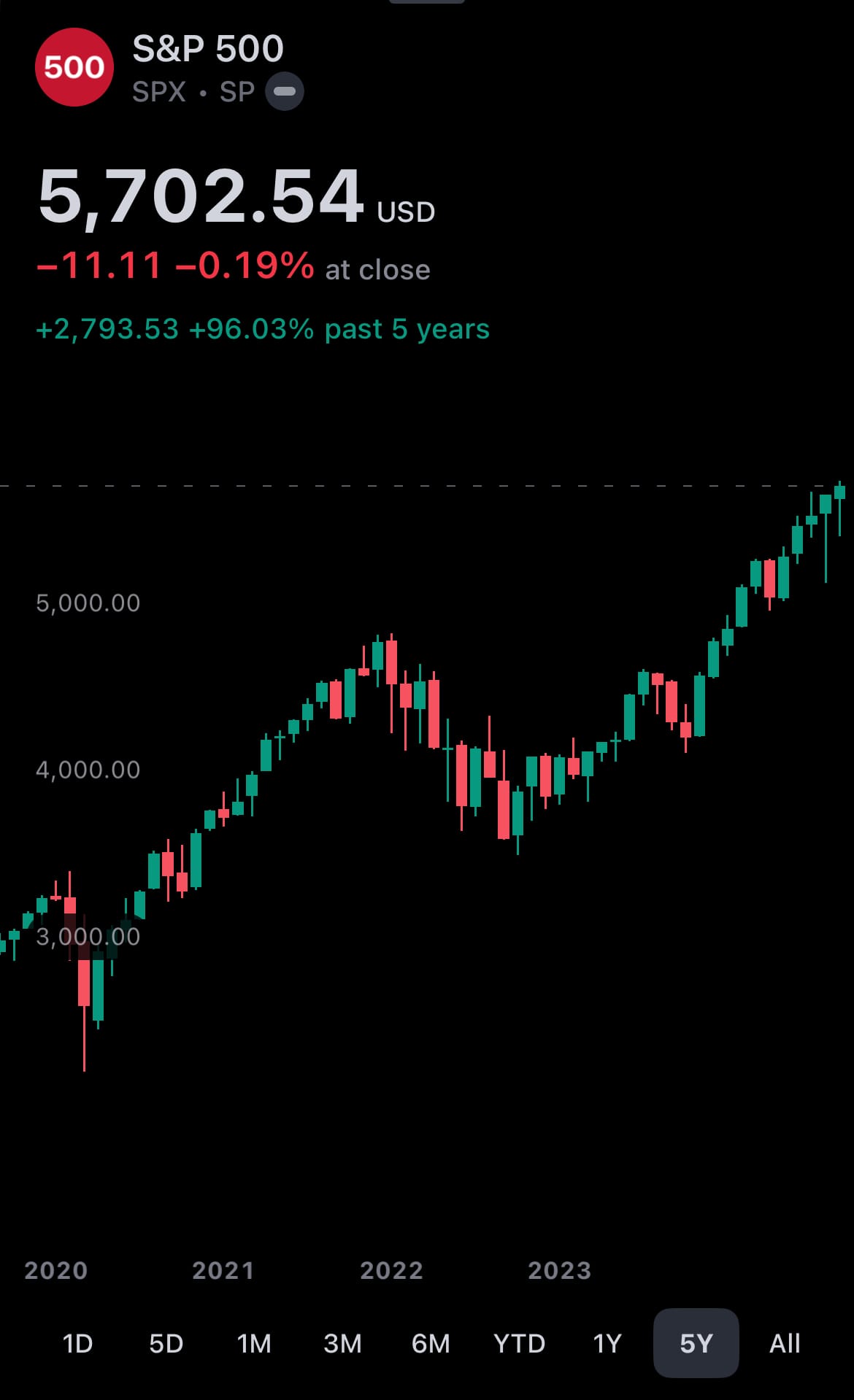 - Past five years of S&P 500 performance: