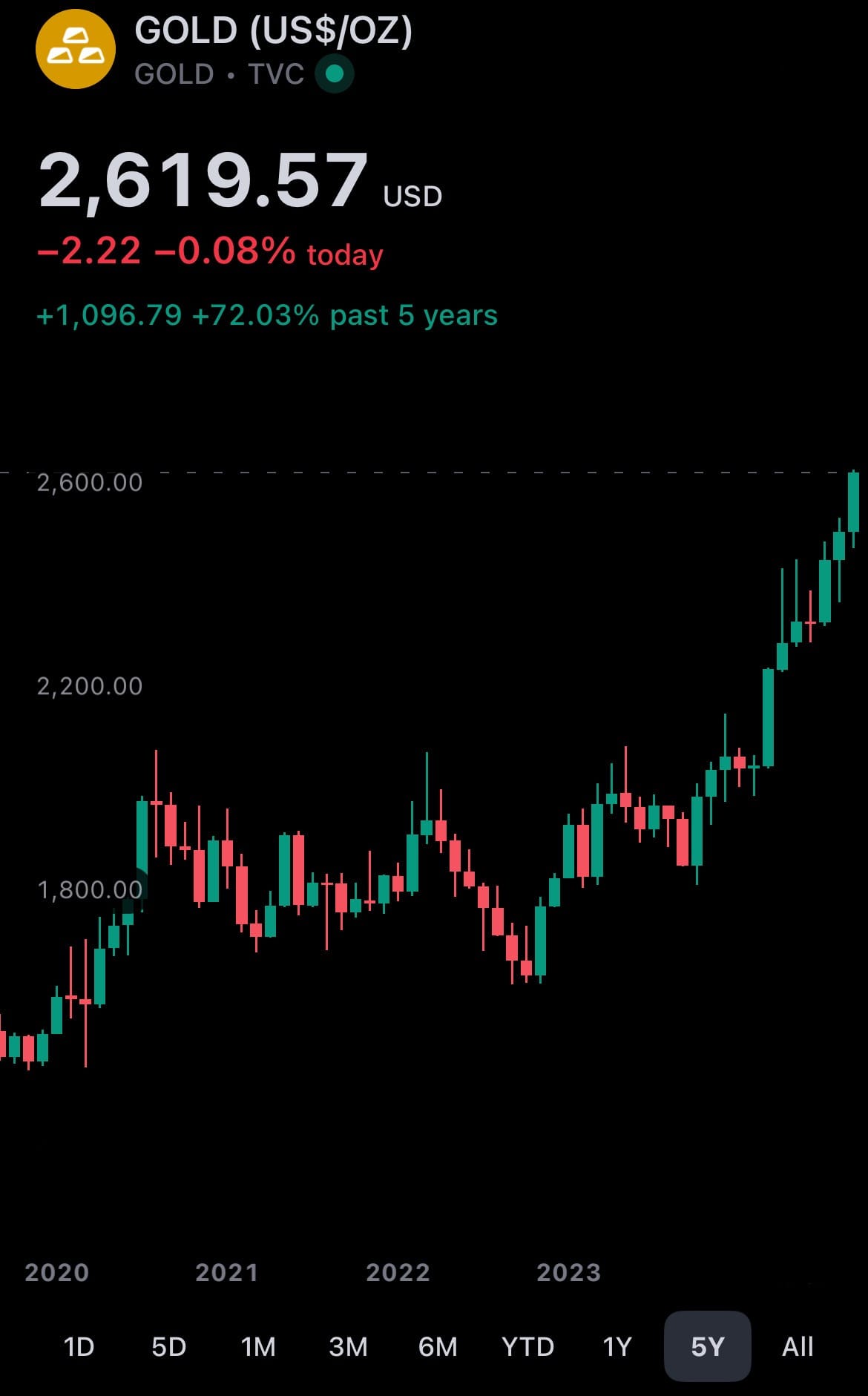 - Past five years of Gold performance: