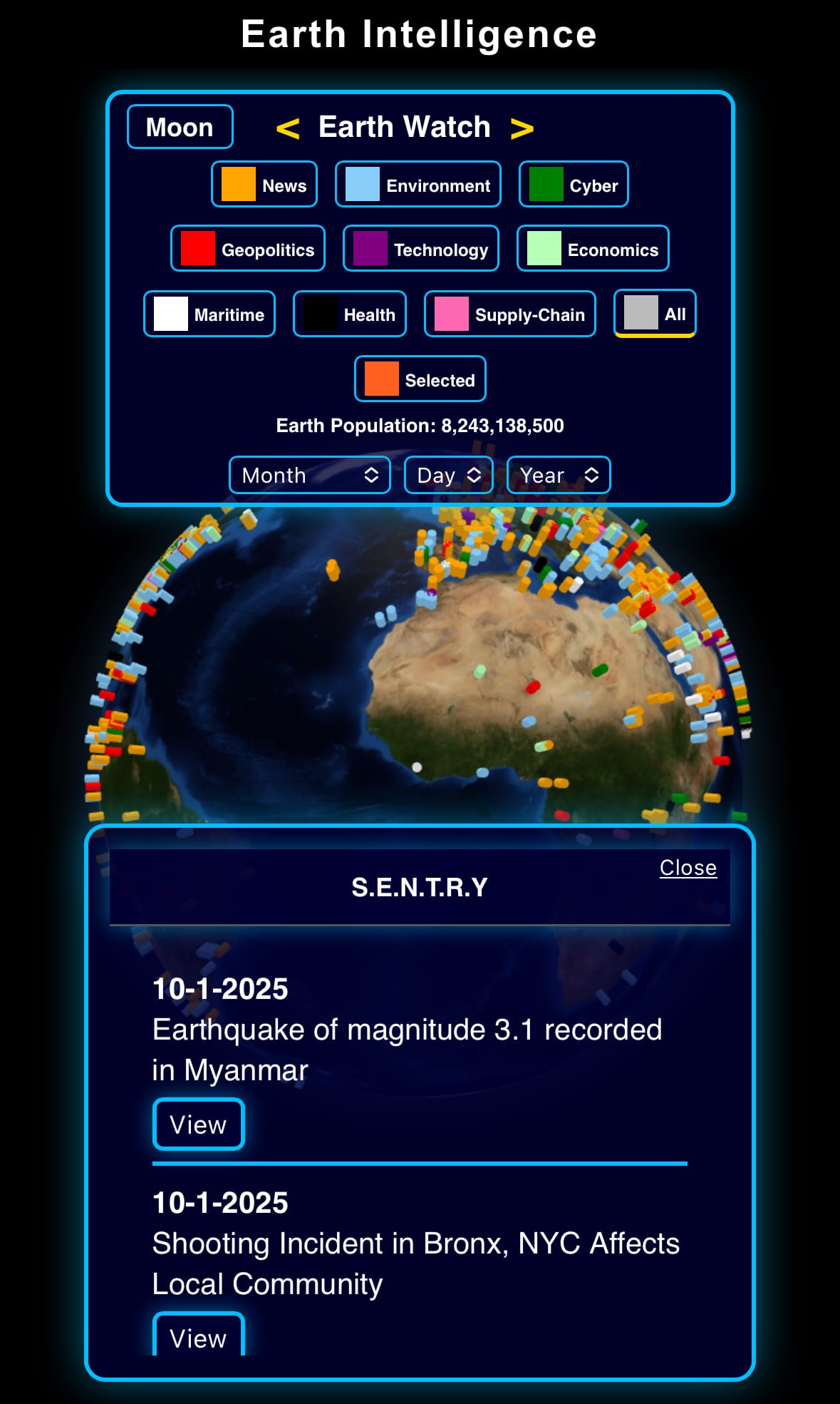 Monitor the planet with our free Earth Watch Globe (Click image below to view):