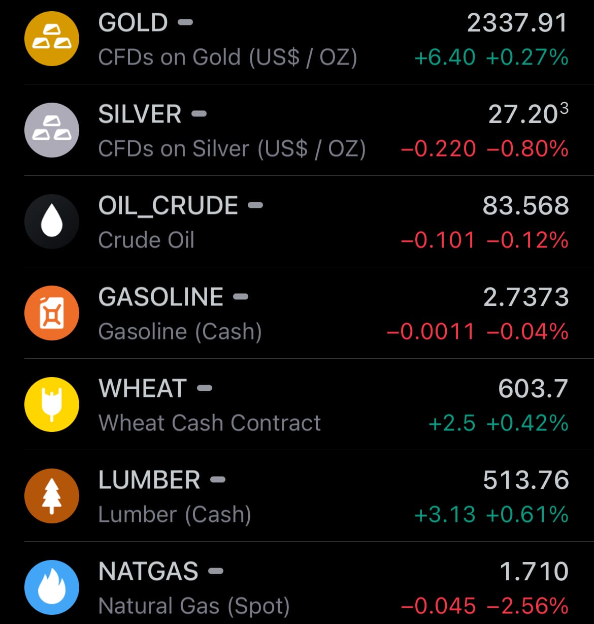 - Yesterday’s commodity market: