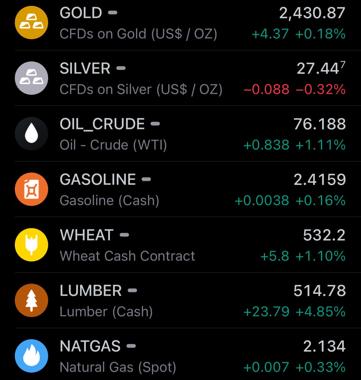 - Yesterday’s commodity market: