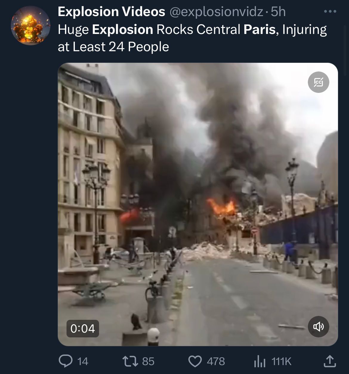 Paris, France Explosion: