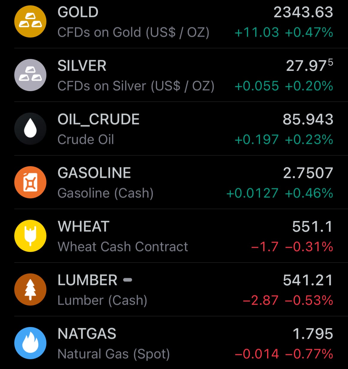 - Yesterday’s commodity market: