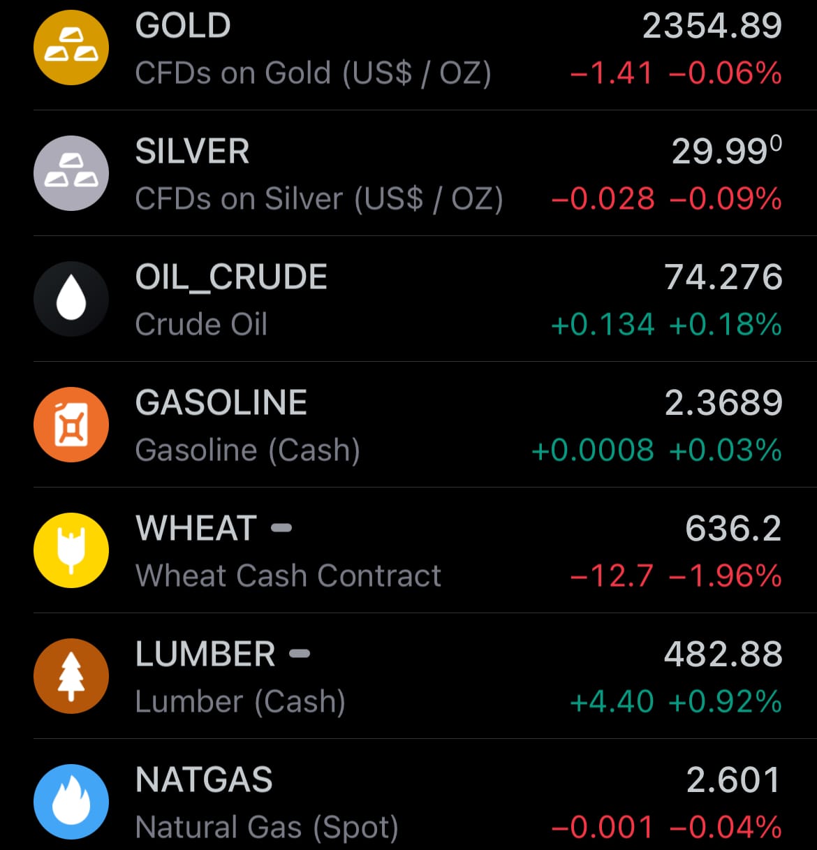 - Yesterday’s commodity market: