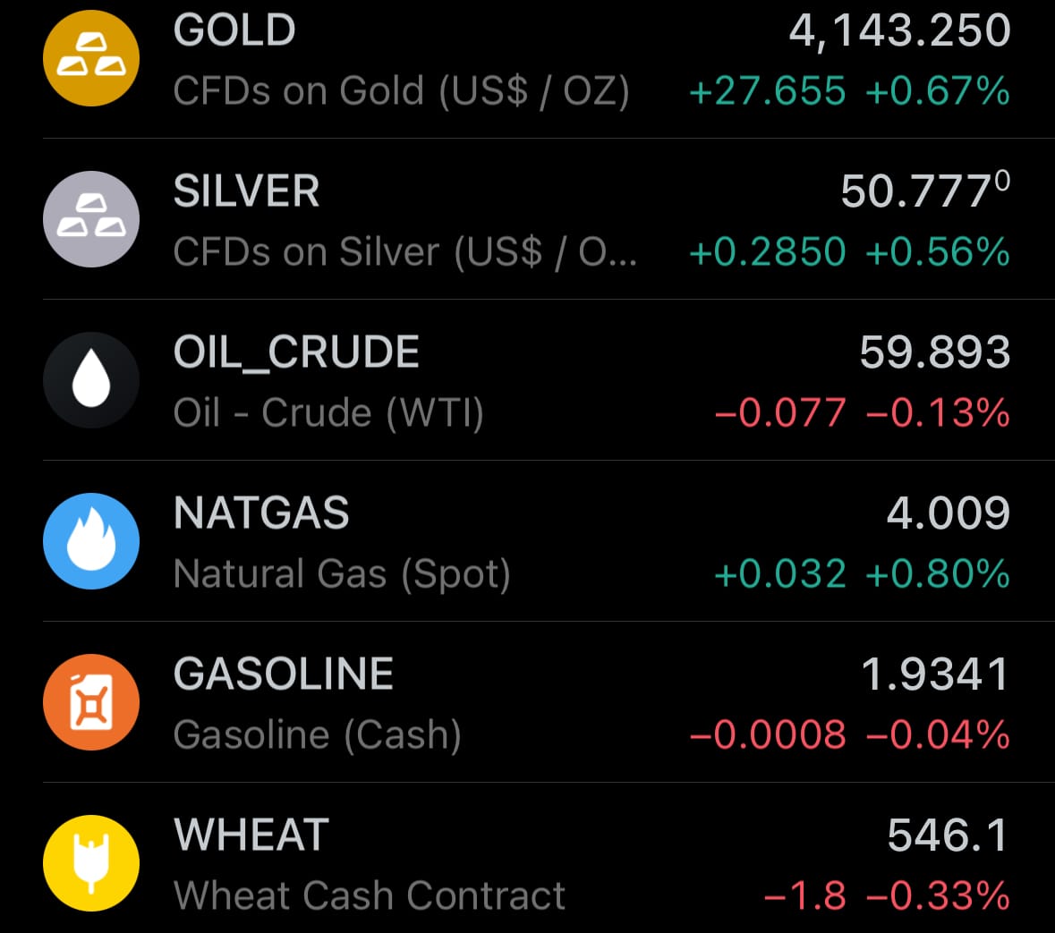 - Yesterday’s commodity market: