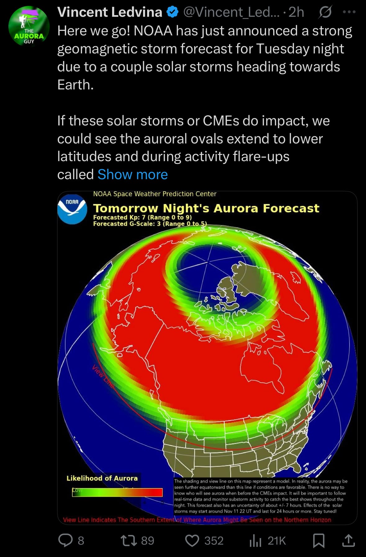 - The first CME erupted on November 9 with slower speeds, while the second, faster CME occurred on November 10, potentially catching up to the earlier one en route to Earth. These events follow recent solar activity, including an X-class flare on November 9 from Active Region 4274, though the watches focus on the CMEs' glancing or partial arrivals starting later on November 11, with flanking influences possibly beginning in the evening EST and extending through November 12 into November 13.