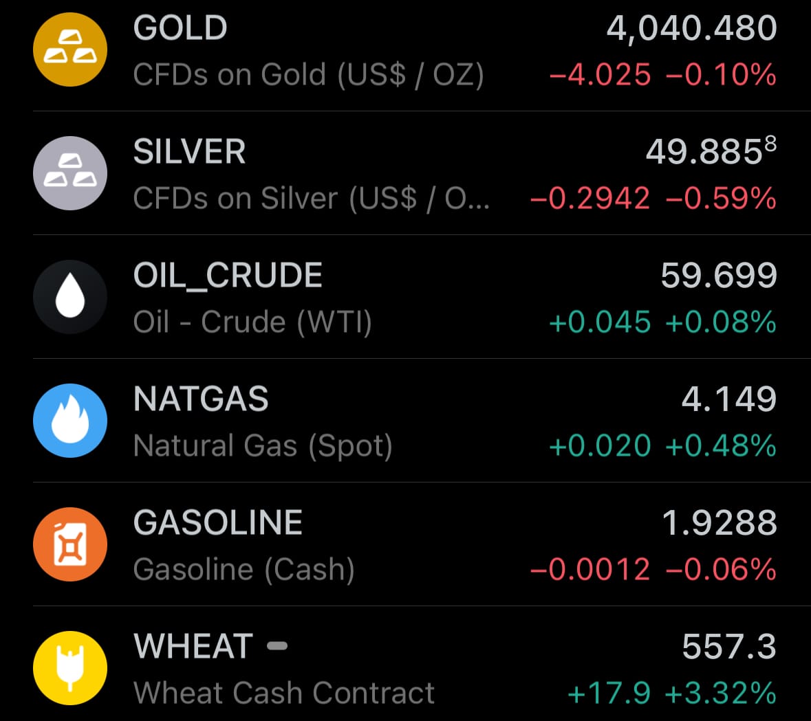 - Yesterday’s commodity market: