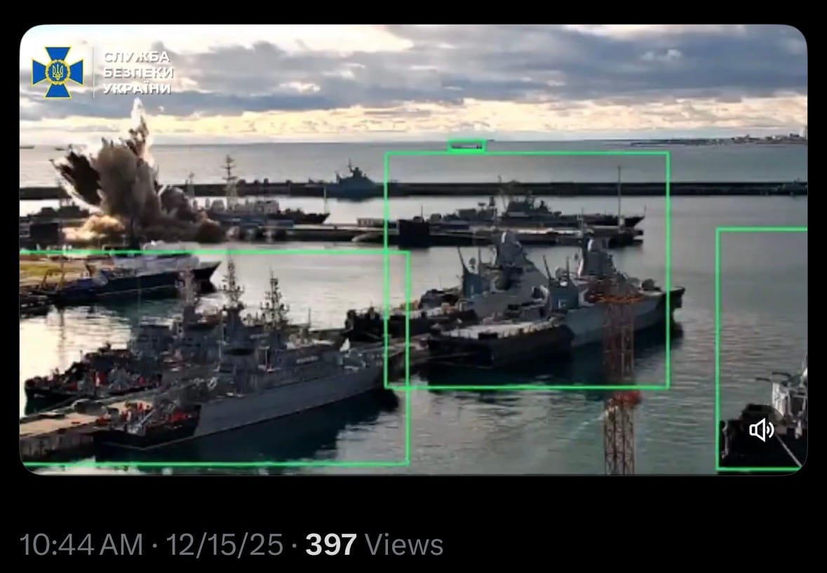 - On December 15, 2025, Ukraine's Security Service (SBU), in a joint operation with the Ukrainian Navy, claimed to have struck a Russian Project 636.3 Varshavyanka-class diesel-electric submarine (NATO: Improved Kilo) in the port of Novorossiysk using "Sub Sea Baby" underwater drones. The SBU stated the attack caused critical damage, rendering the vessel inoperable, and marked the first reported instance of a submarine being hit by such drones. The submarine, capable of launching Kalibr cruise missiles used against Ukraine, was valued at approximately $400 million (potentially $500 million for a replacement due to sanctions).