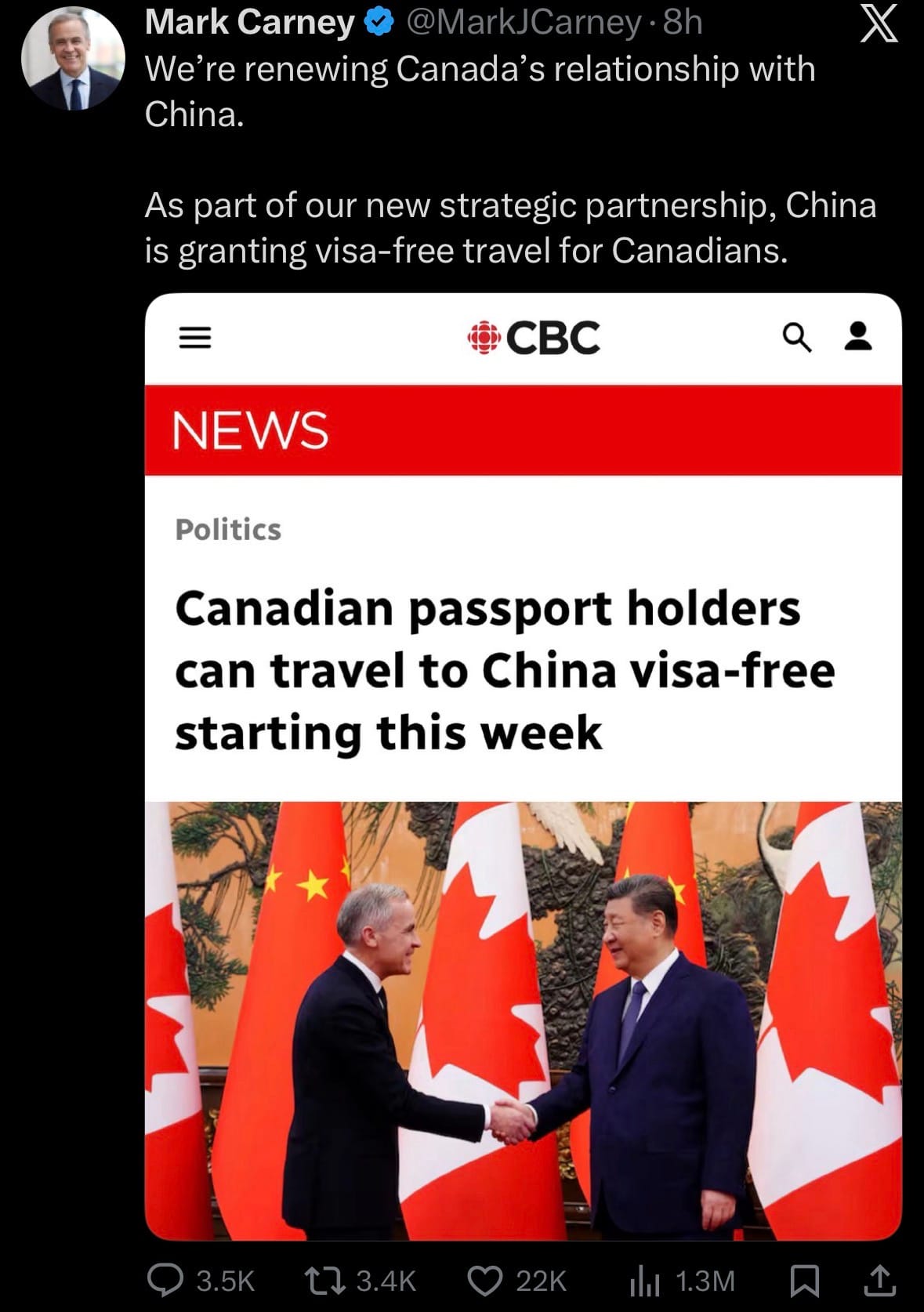 - This development follows Prime Minister Carney's January visit to Beijing, where he secured commitments from President Xi Jinping to facilitate easier people-to-people ties as part of broader efforts to strengthen economic and diplomatic relations. The move aligns with China's expansion of its unilateral visa-waiver program to additional countries, aiming to boost tourism and business exchanges amid improving bilateral dynamics.