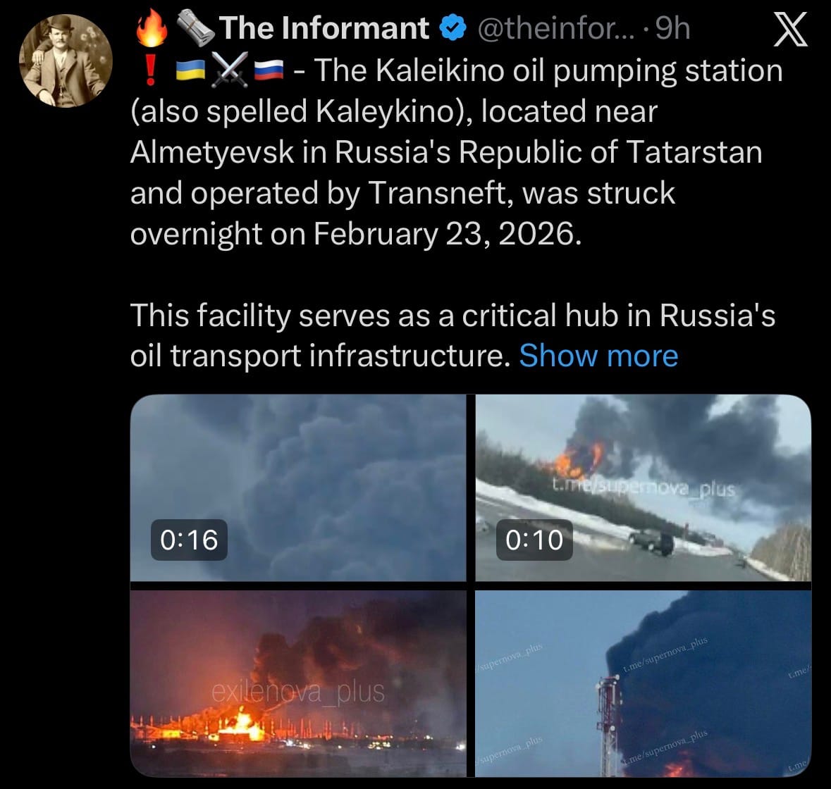 - On February 23, 2026, the Kaleikino oil pumping station near Almetyevsk in Russia's Tatarstan Republic was struck overnight by a Ukrainian long-range drone attack, as confirmed by SBU sources. The Transneft-operated facility blends crude from Western Siberia and the Volga region before feeding the Druzhba pipeline, a key route for Russian oil exports to Central Europe, especially Hungary and Slovakia.