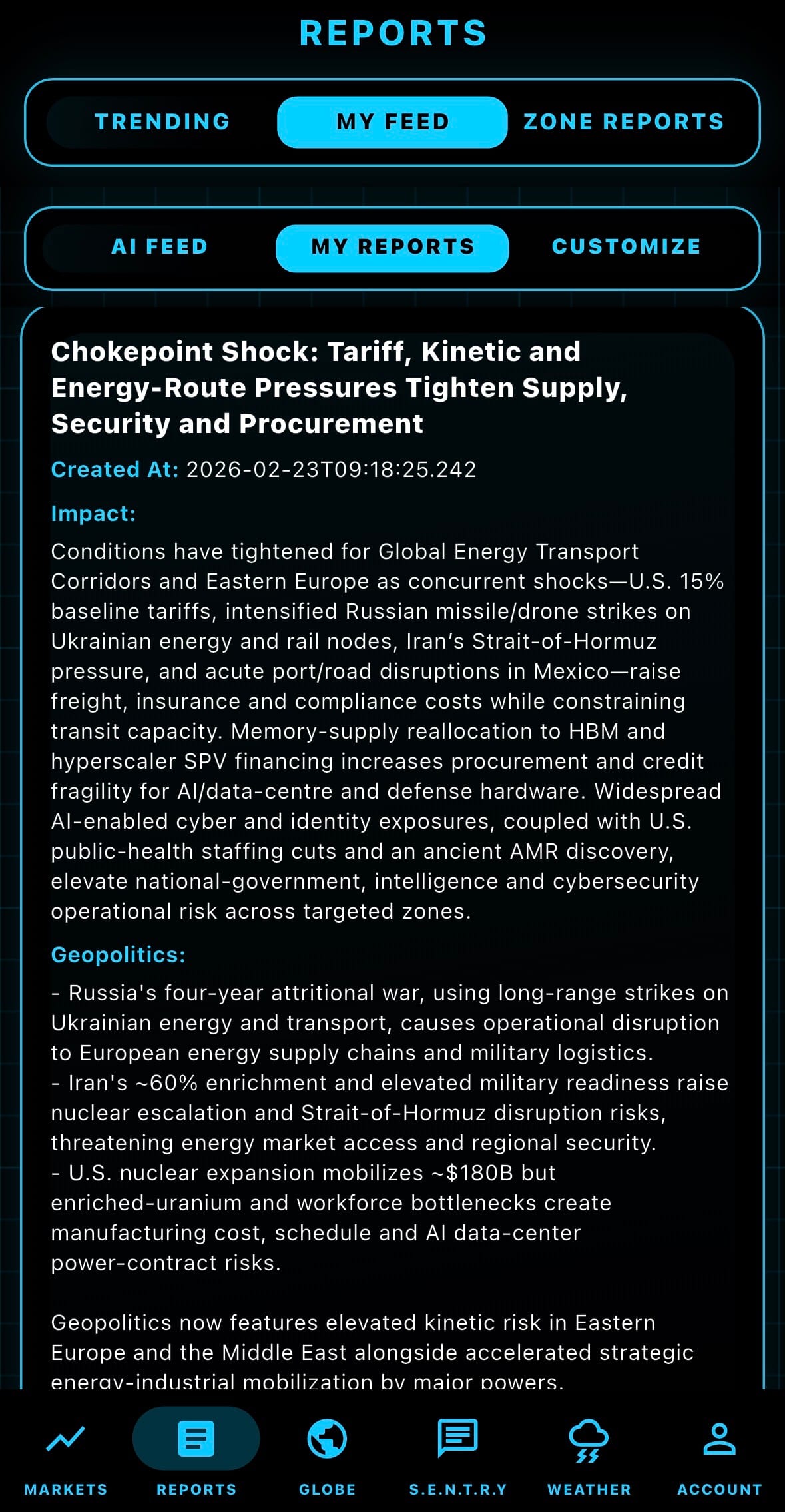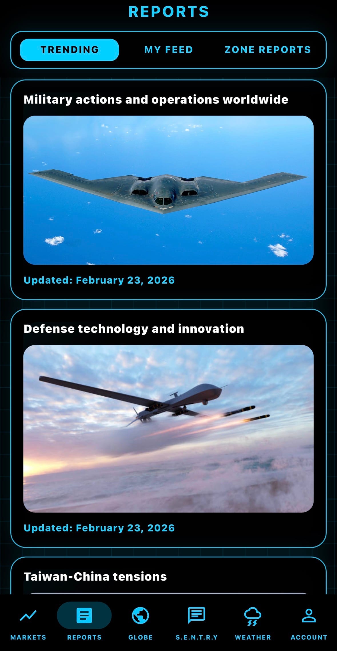- We have launched a new custom reporting system through our mobile app! You can now select your interests (categories, regions, & industries) then receive a daily custom report for better situational awareness.