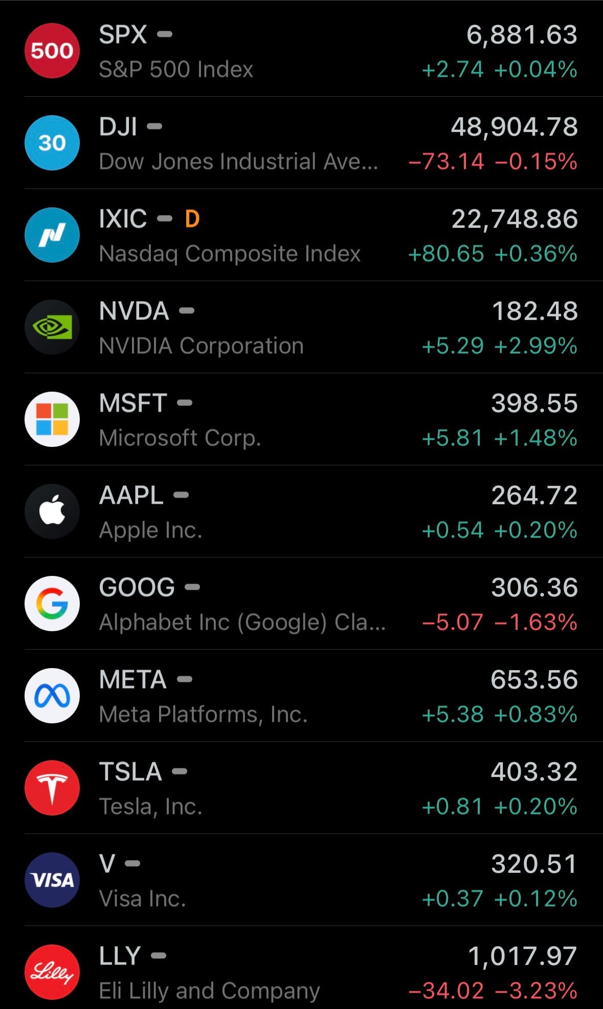 - Yesterday U.S. stock market: