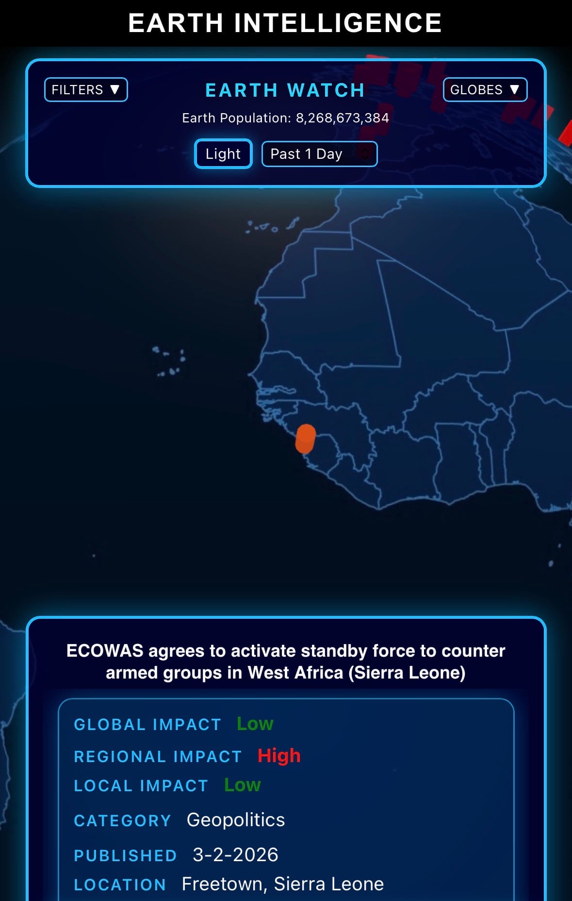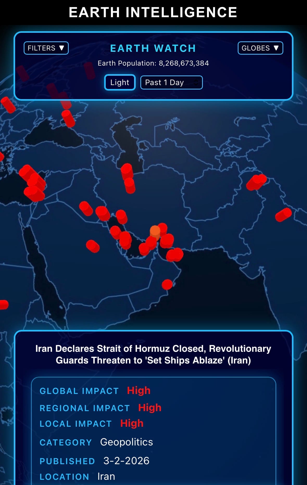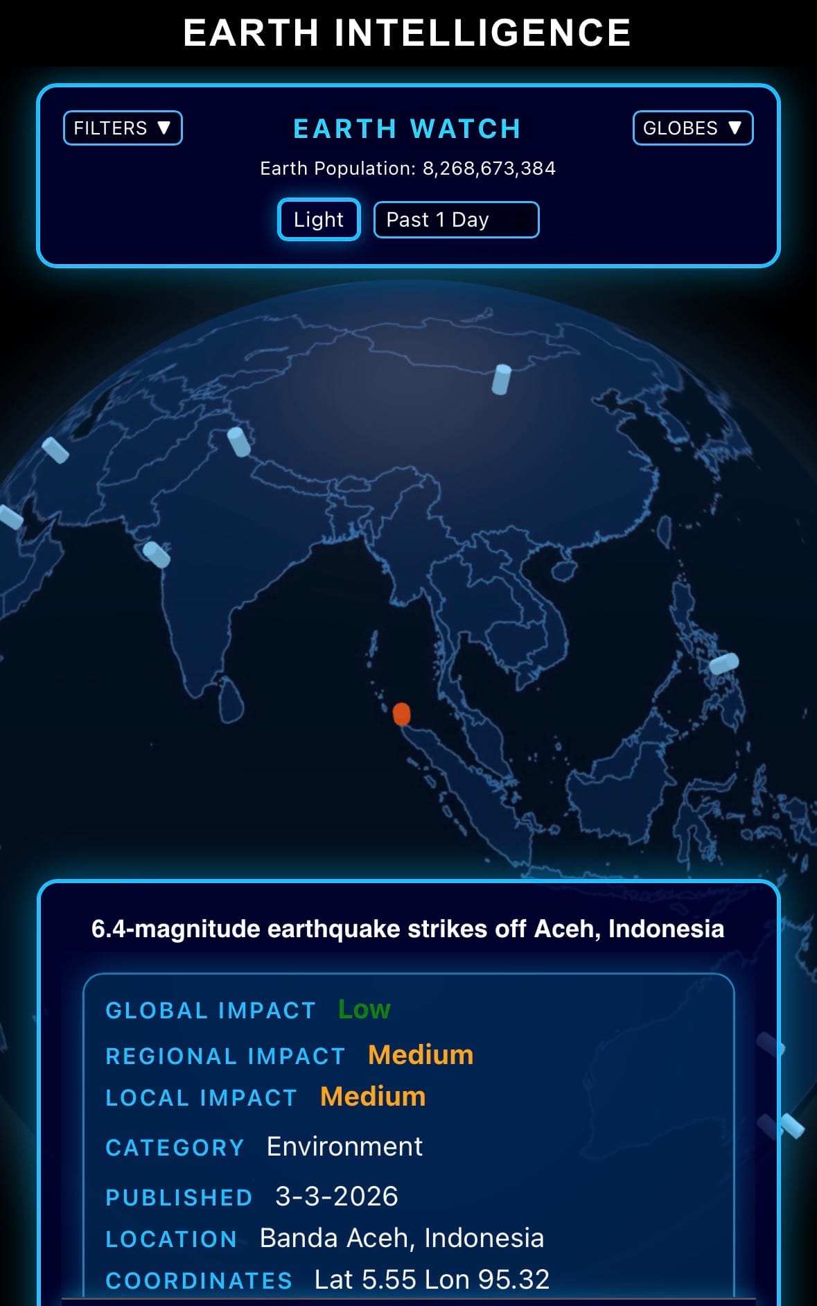 - Click below if you’d like to view our free EARTH WATCH globe: