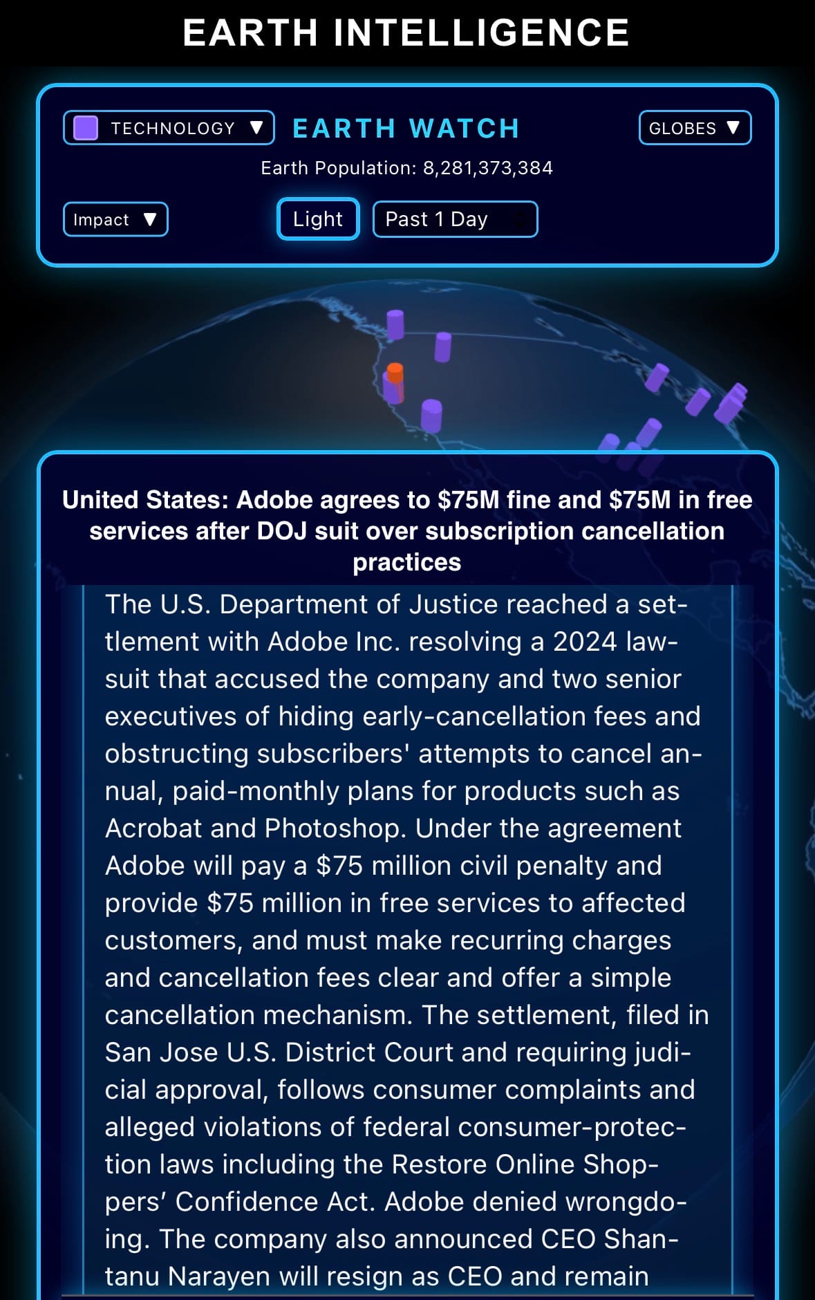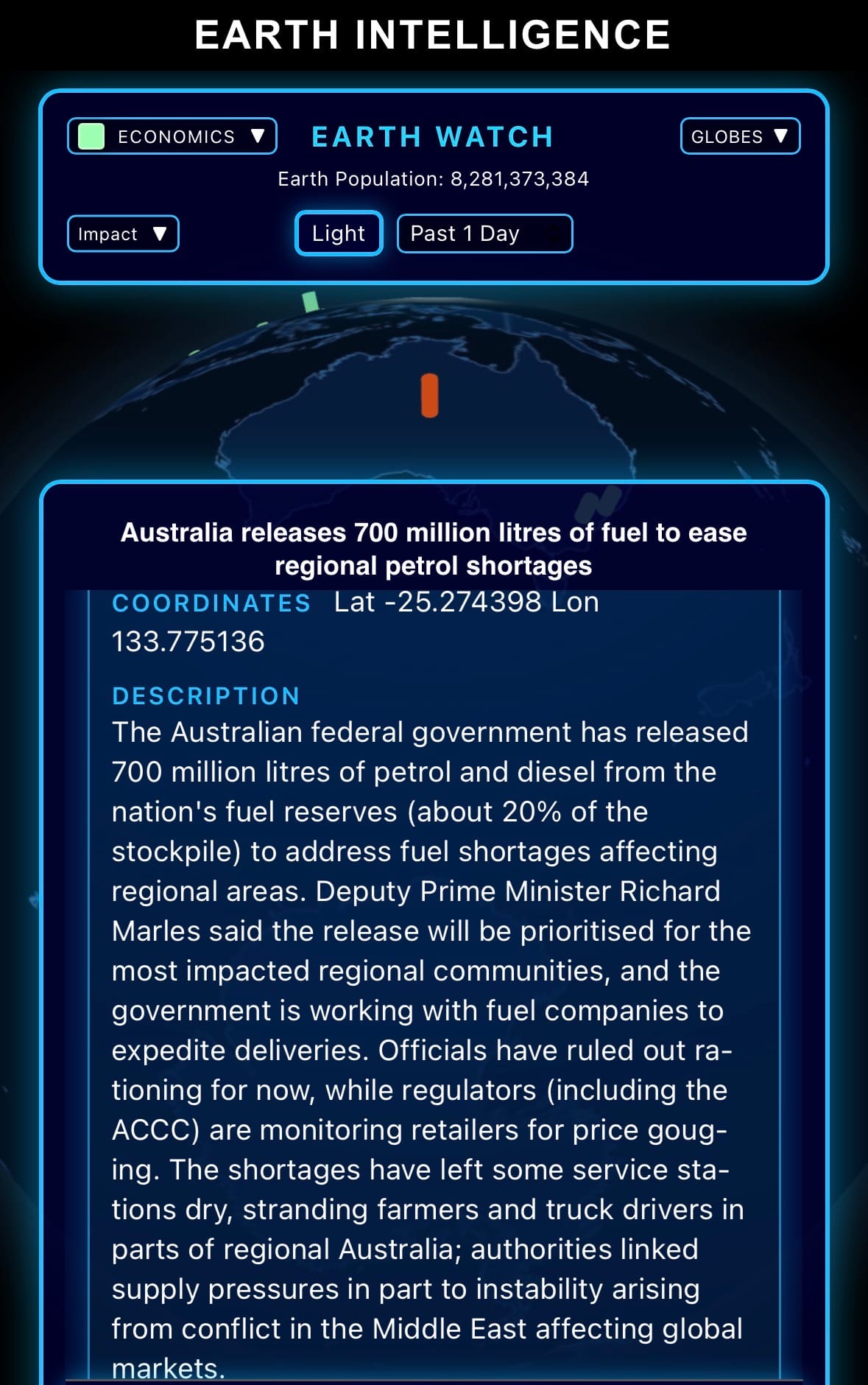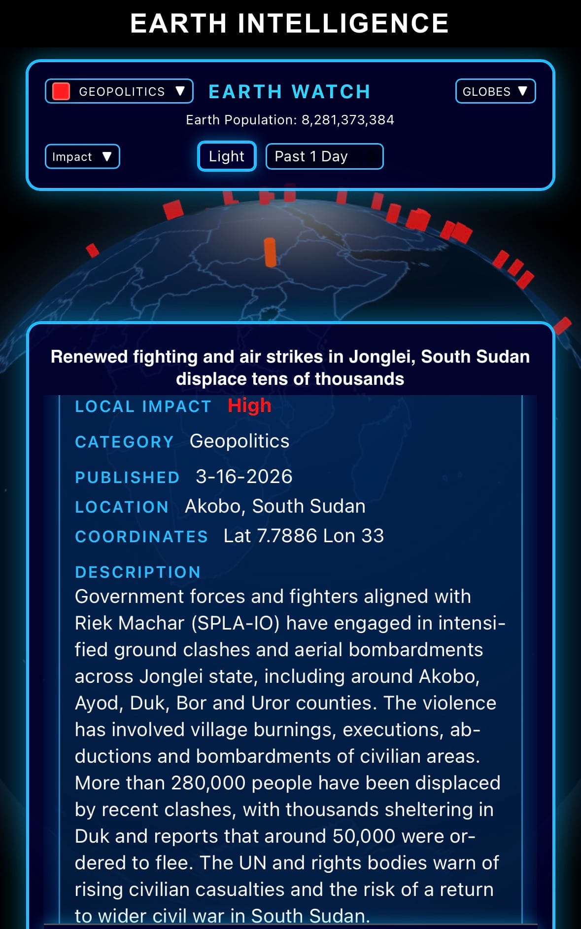 - Click below if you’d like to view our free EARTH WATCH globe: