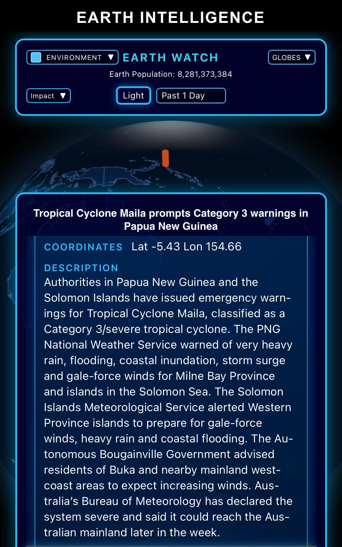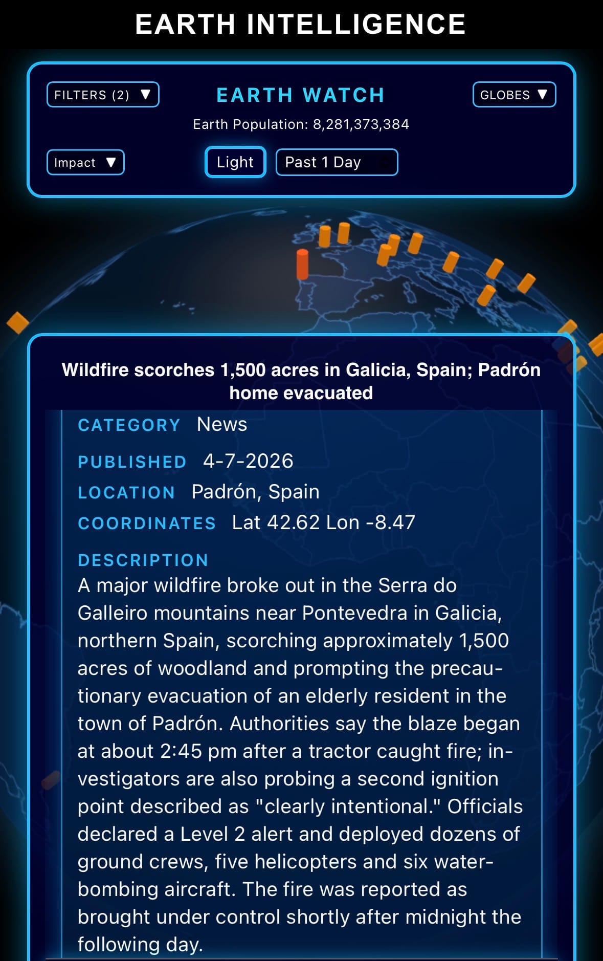 - Click below if you’d like to view our free EARTH WATCH globe: