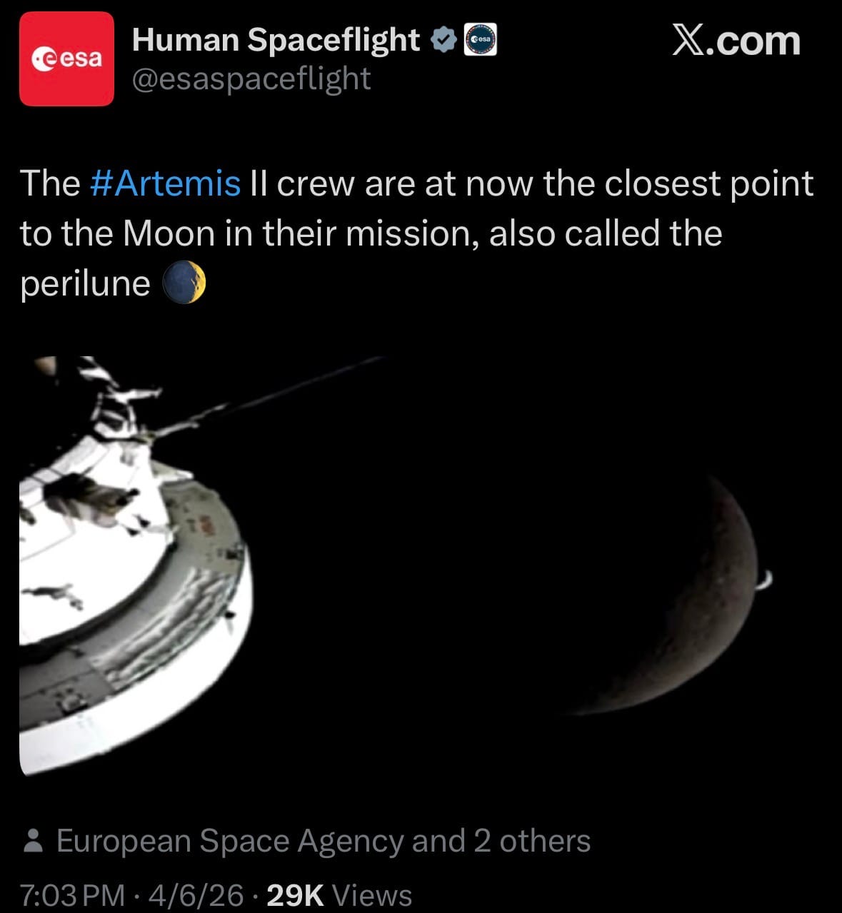 - The crew successfully completed their close lunar flyby yesterday, flying just 4,000 miles above the Moon’s surface and becoming the first humans in over 50 years to see the far side of the Moon with their own eyes. Orion is now on its return trajectory to Earth and remains on track for a splashdown off the coast of San Diego on April 10 or 11.