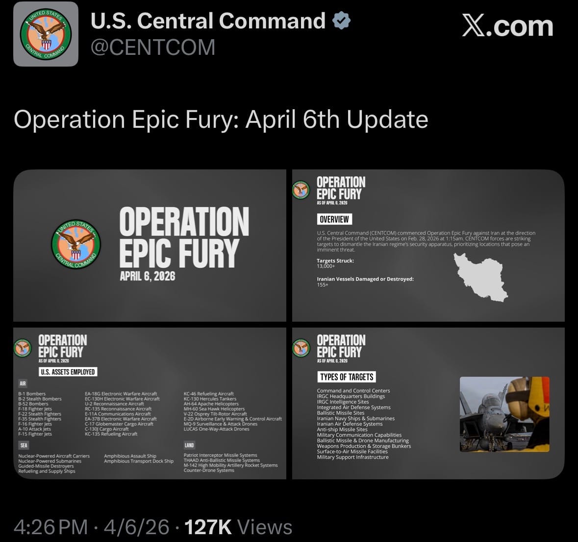 - The Strait of Hormuz remains fully closed for the 34th straight day. Multiple nations, including the U.S., Germany, Japan, South Korea, India, and Saudi Arabia, have announced major increases in military spending and arms production in the last 24 hours. Europe and Asia are currently being hit the hardest economically by fuel shortages, surging energy prices, and rising food costs.