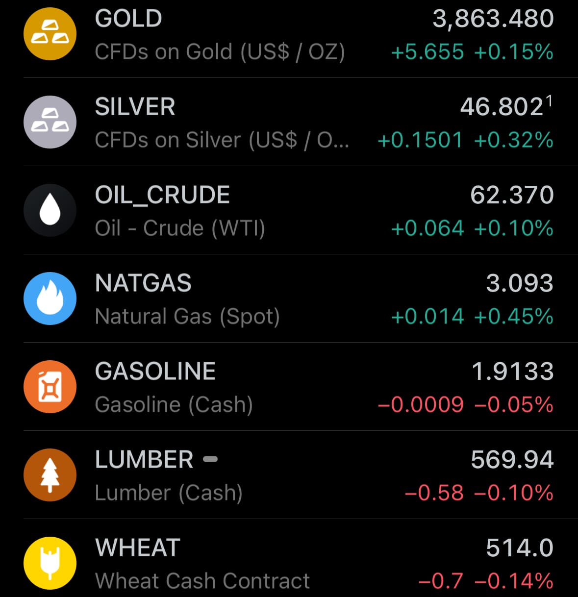 - Yesterday’s commodity market: