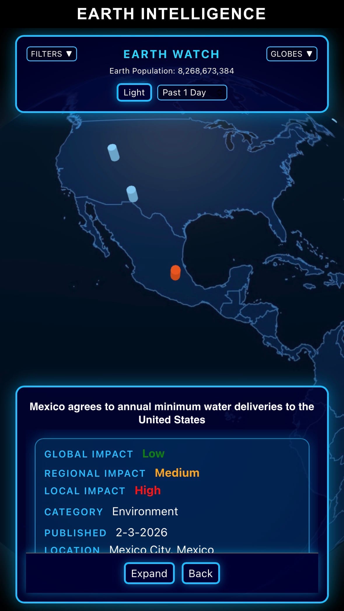 - Click below if you’d like to view our free EARTH WATCH globe: