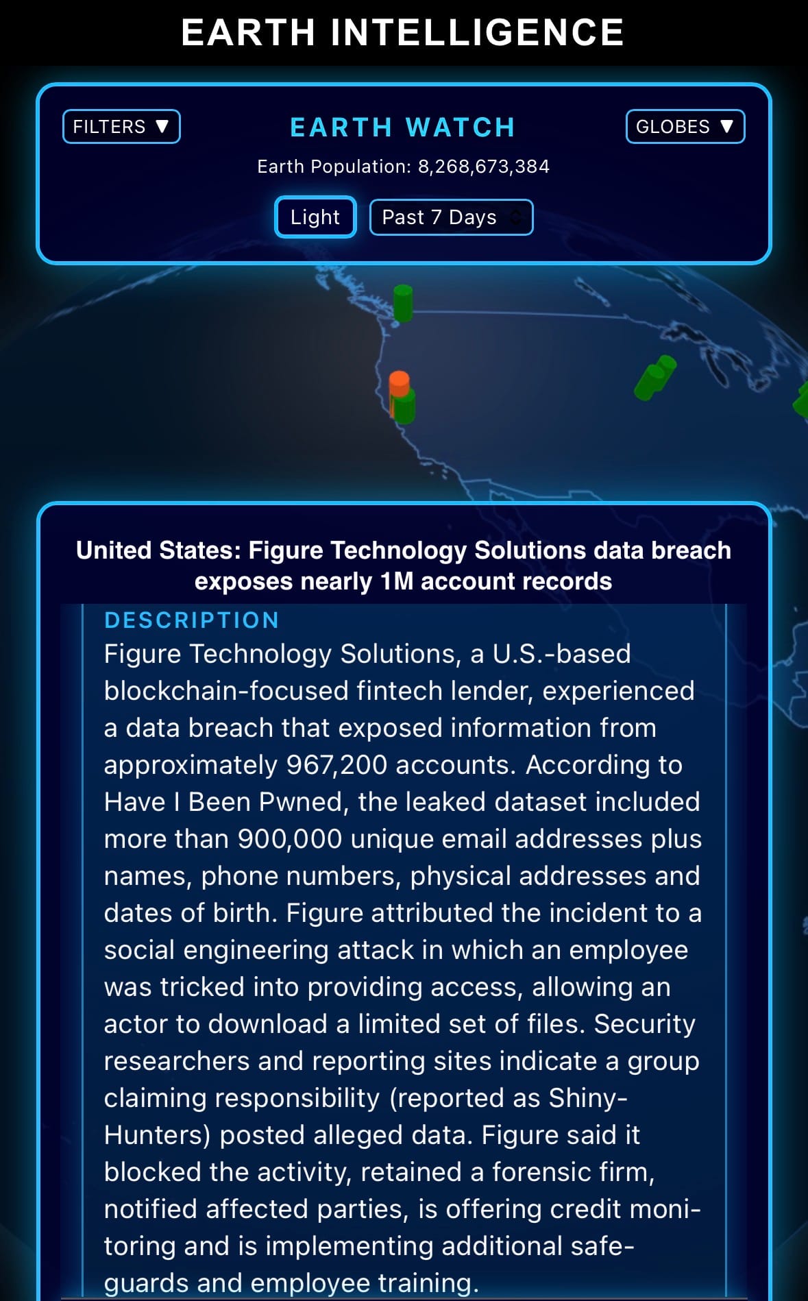 - Click below if you’d like to view our free EARTH WATCH globe: