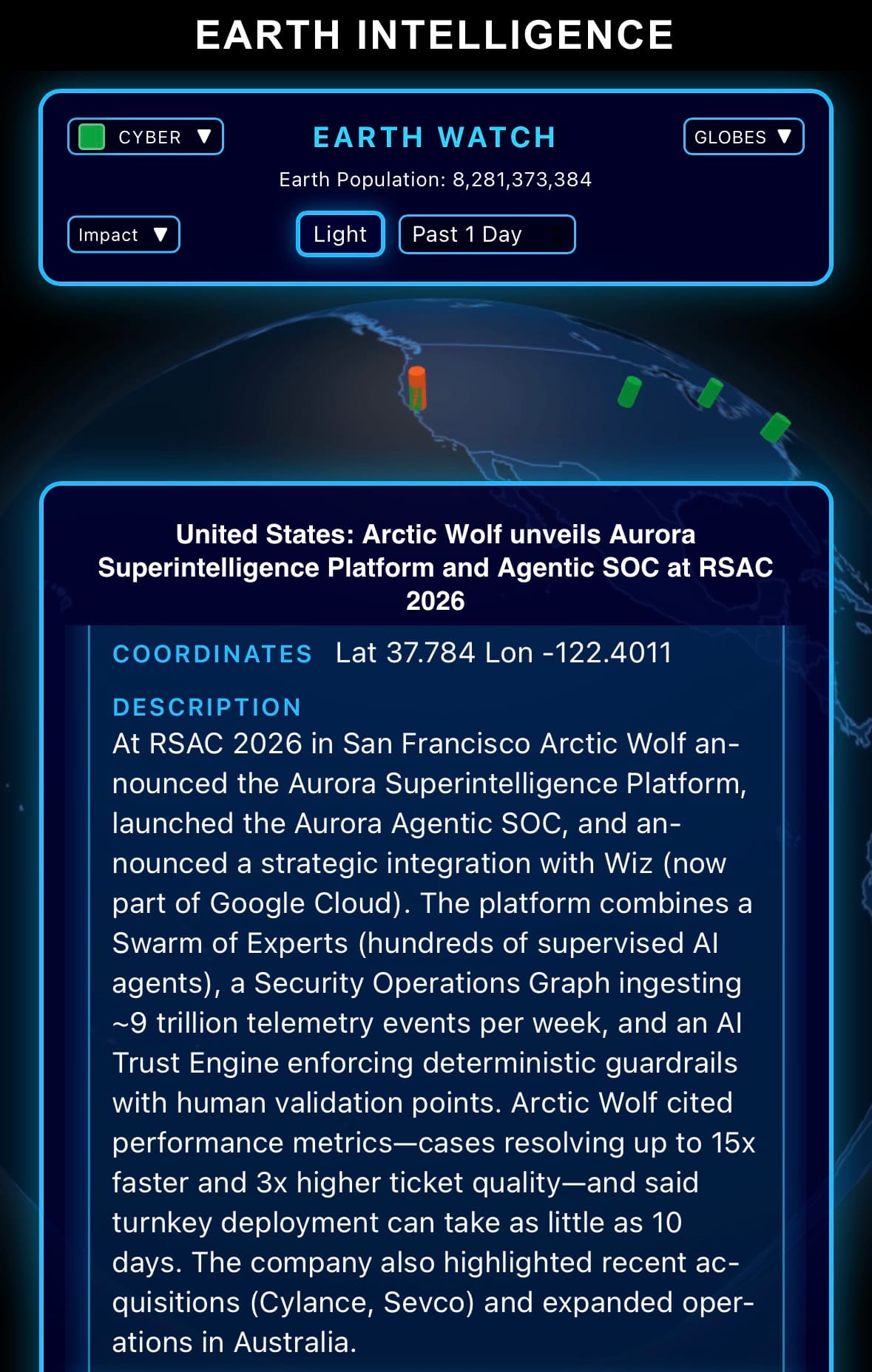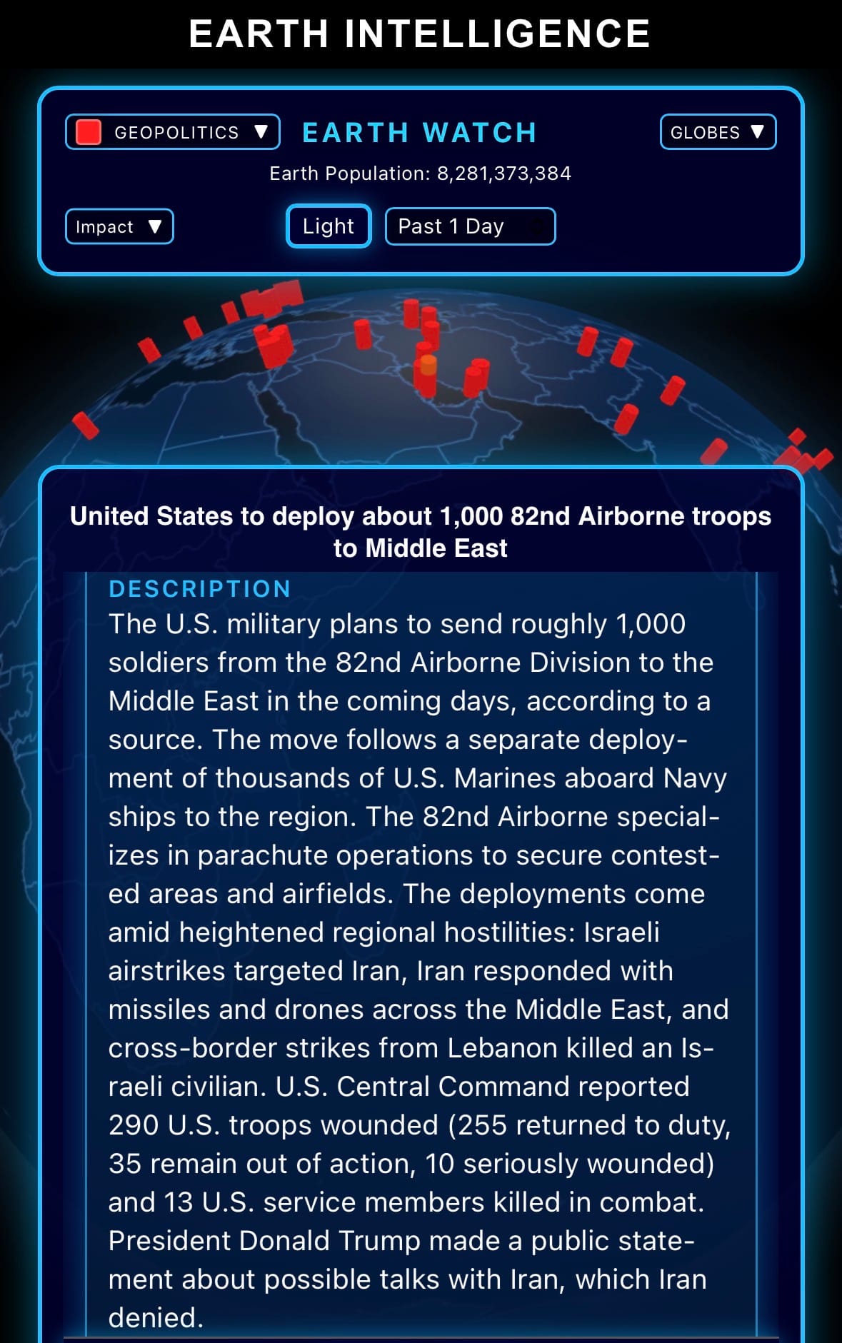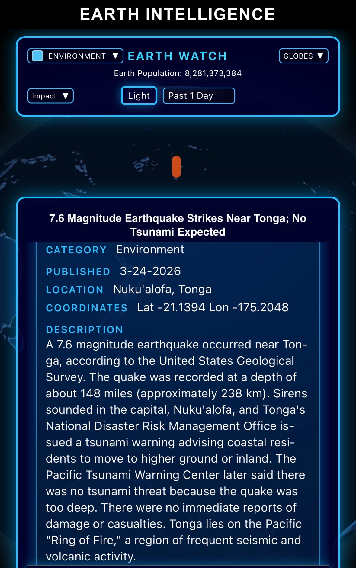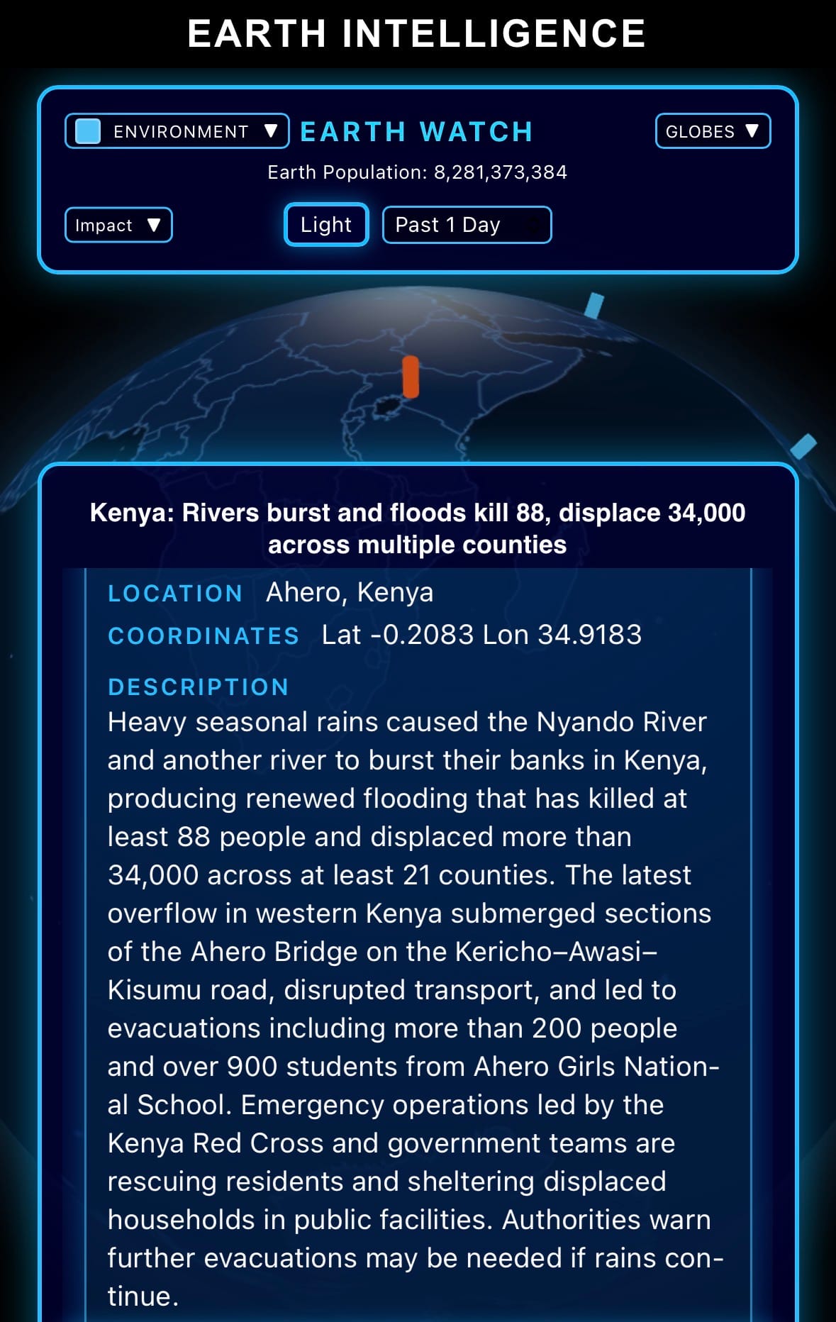 - Click below if you’d like to view our free EARTH WATCH globe:
