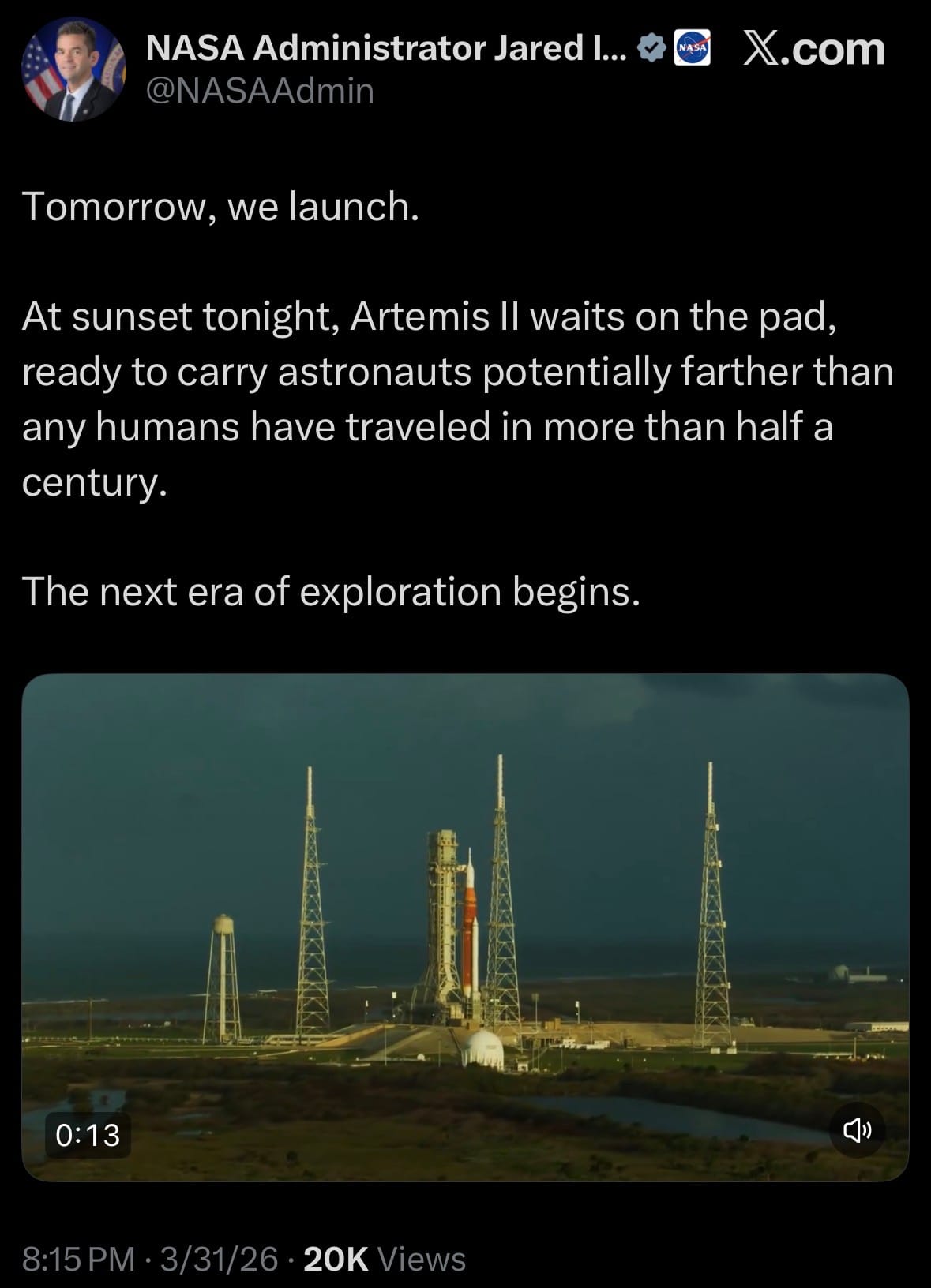 - On April 1, 2026, NASA plans to launch the Artemis II mission, the first crewed flight of the Artemis program.