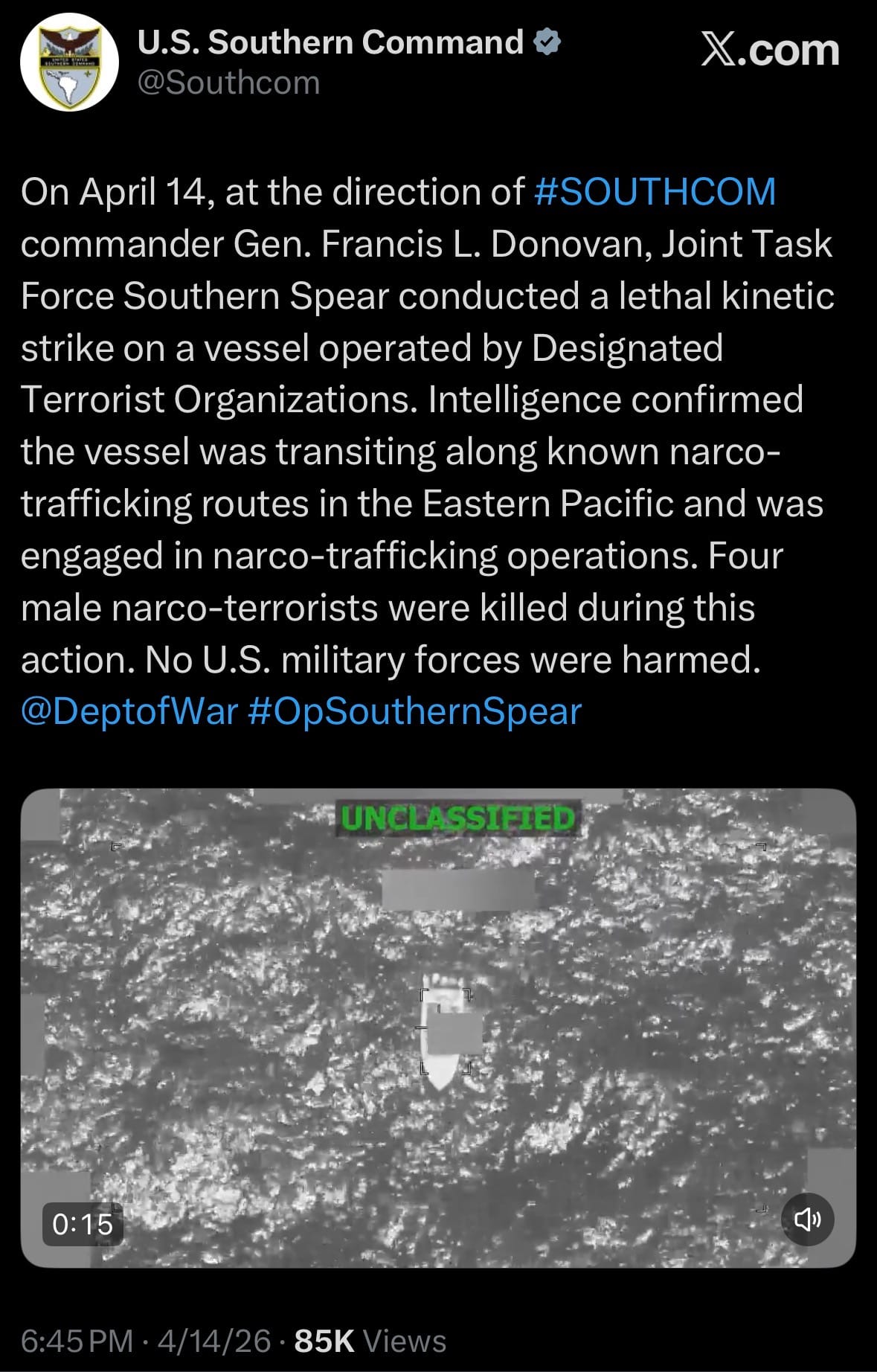 - In the first 24 hours of the operation, no vessels successfully passed the blockade, and six merchant ships complied with U.S. orders and turned around to return to Iranian ports. The blockade is being applied impartially to ships of all nations, while U.S. forces continue to ensure freedom of navigation for vessels transiting the Strait of Hormuz to and from non-Iranian ports.