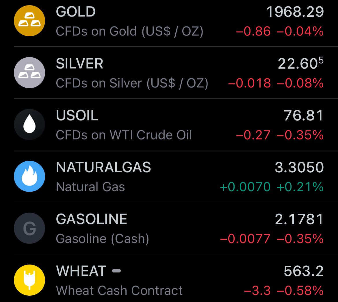 - Yesterday’s commodity market: